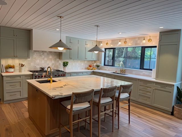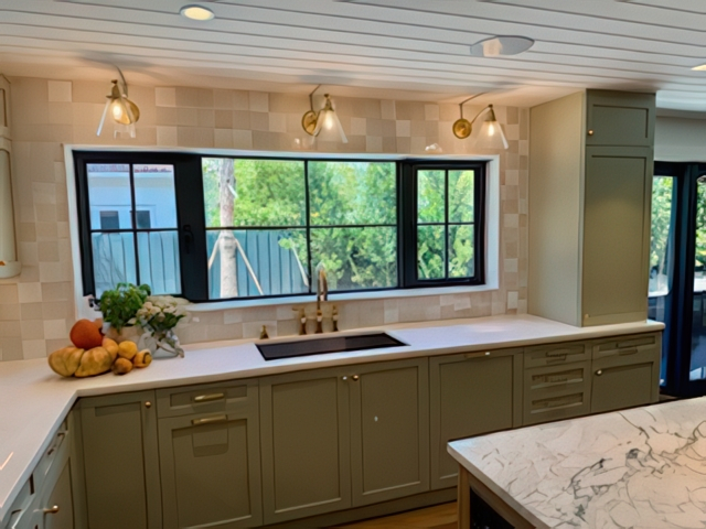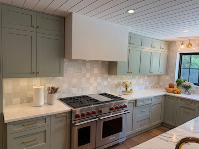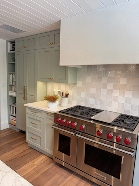 Every once in a while, a project comes along that’s equal parts challenge and delight-this was one of them. My clients were detail-driven (okay, fussy in the best possible way), but also full of creative energy and vision. Together, we designed a kitchen that feels fresh, natural, and effortlessly elegant-a beautiful blend of soft green cabinetry and warm oak wood accents topped with stunning marble countertops.